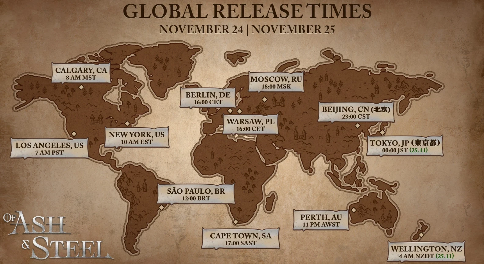 Обложка: скриншот Of Ash and SteelРазработчики из Fire & Frost поделились деталями скорого релиза ролевой игры Of Ash and Steel. Например, было названо точное время релиза. Новинки выйдет завтра, 24 ноября, в 18:00 МСК. Увидеть RPG можно было бы ещё раньше, но студия взяла дополнительное время для исправления ошибок.