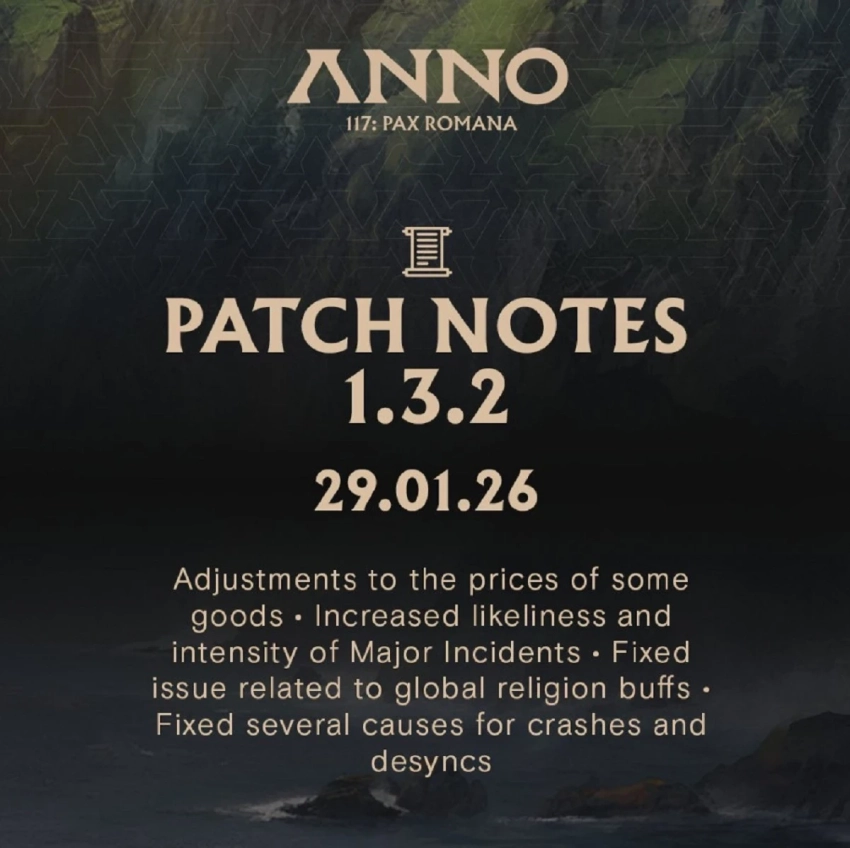 Обложка: постер Anno 117: Pax RomanaСтратегия Anno 117: Pax Romana получила патч 1.3.2. В нём уделили особое внимание балансным правкам. Например, стоимость множества товаров повысилась, а кое-где и снизилась. В ответ на это потребление некоторых ресурсов незначительно уменьшилось.