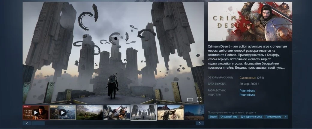 Напомним, что журналисты разделились в оценках Crimson Desert из-за сюжета и квестов. У игроков новинка тоже пока вызывает неоднозначные чувства. В Steam на неё написано уже более 4 тыс. обзоров, но рекомендуют только 60%. Как результат, у Crimson Desert сформировался «смешанный» пользовательский рейтинг.